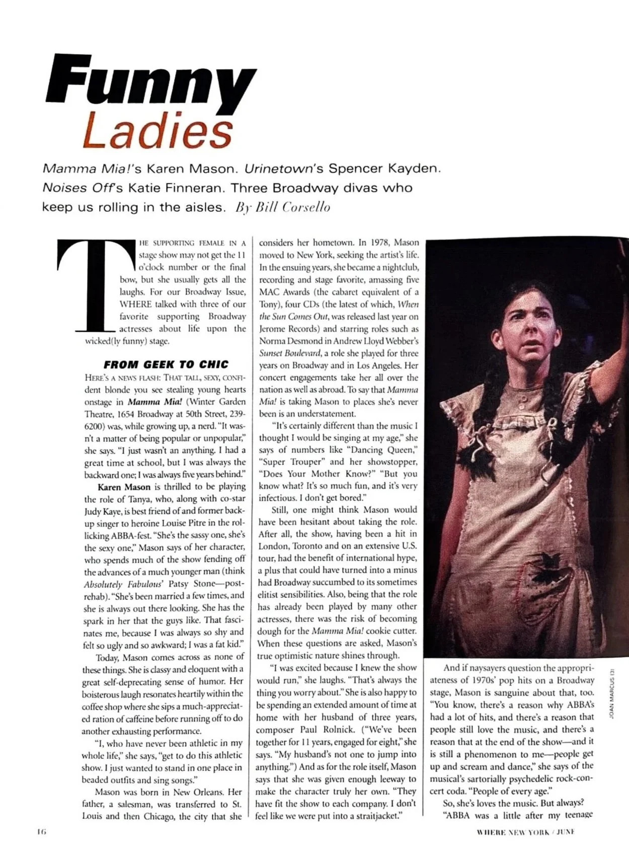 Mamma Mia!’s Karen Mason. Urinetown’s Spencer Kayden. Noises Off’s Katie Finneran. Three Broadway divas who keep us rolling in the aisles.